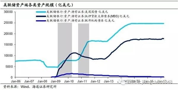 经过三轮量化宽松政策以后,美联储总资产规模扩大为原来的5倍。2008年初美联储总资产规模不到9000亿美元,而截至目前美联储总资产规模已经超过4.4万亿美元。尽管美联储在2014年就退出了QE,但是由于美联储对到期资产采取持续投资的策略,因此2年多来,美联储的资产规模一直维持在QE退出时的历史最高位。