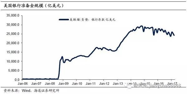 美联储开始讨论缩表的背后也是对准备金规模过大的担忧。危机时期,超额准备金可以起到稳定经济的作用,而市场流动性充裕时,准备金规模过大则会影响美联储货币政策的有效性。在市场利率不断上升的情况下,大量超额准备金随时都有可能转化成为投放的基础货币,增加经济过热的风险。