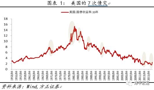 我们首先观察比我国债券市场规模大的两个市场(也是全球最大的两个债市):美国及日本债券市场。根据以上判断债灾的标准,美国在近年出现过7次债灾(1969年8月-1970年1月、1979年6月-1981年9月、1984年1月-1984年6月、1987年3月-1987年10月、1994年1月-1994年11月、2013年4月-2013年12月、2016年7月至今);日本债市在历史上也发生过三次著名的债灾(1979年8月-1980年3月、1989年8月-1990年9月、2003年6月-2004年6月).