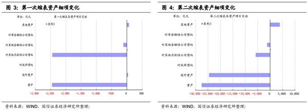 细项来看,第一次缩表主要表现为对其他存款性权减少,而第二次缩表主要对应着国外资产减少,对应的背景是中国外汇占款下降。