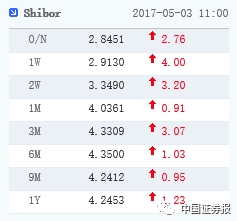 3日早间公布的SHIBOR全线上涨,其中隔夜、7天和14天品种上涨较多,继续传递出短期资金相对紧俏的讯息。值得注意的是,3个月SHIBOR上涨3.07BP,创下近三个月最大单日涨幅,另外6个月和1年期SHIBOR也上涨逾1BP,或暗示眼下的流动性紧势正向更长期限蔓延。
