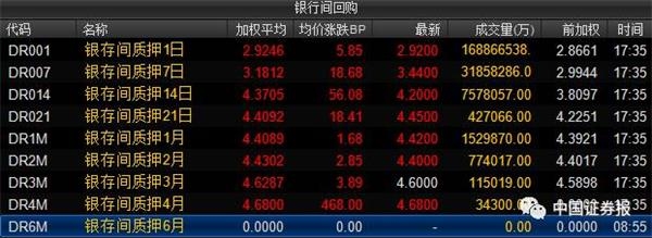 间市场质押式回购(存款类机构,下同)整体走高,连上一日出现回落的1个月以内中短期回购也都重返升势。