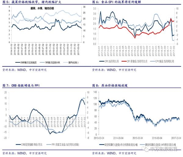 4月食品价格涨幅总体变化不大。4月农业部公布的28种重点监测蔬菜同比下跌19.8%,而3月为下跌27.5%。4月猪肉价格下跌15.7%,3月为下跌10%,跌幅扩大;4月7种重点监测水果价格上涨2.9%,3月为下跌1.1%。预计4月CPI总体平稳,继续维持在0.9%左右。