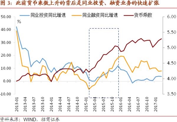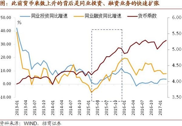 3)5月商业银行将继续自查自纠,同业业务的调整尚未结束。回顾15年同业业务快速扩张时期,货币乘数快速抬升,流动性偏松。那么如果部分银行同业业务的资产端和负债端开始出现收缩,货币乘数不仅难以增加,甚至有回落的可能性,这意味着流动性也会易紧难松。