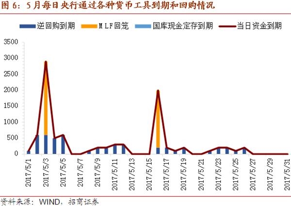 5月公开市场资金到期量较大,又有税收上缴的压力。5月份的到期量共9095亿元,其中包括4095亿MLF,即5月3日和16日分别到期2300亿元和1795亿元。