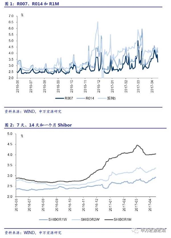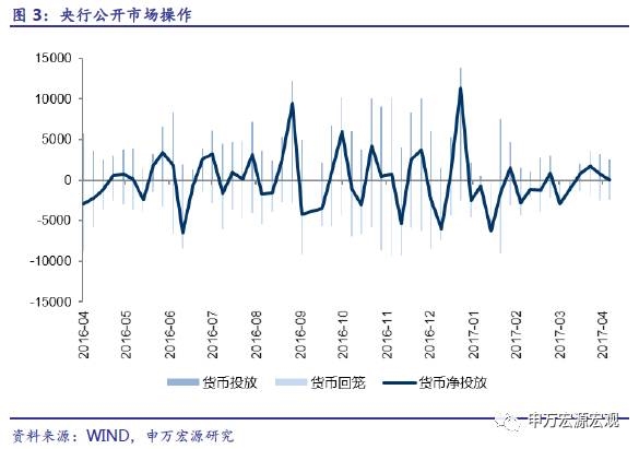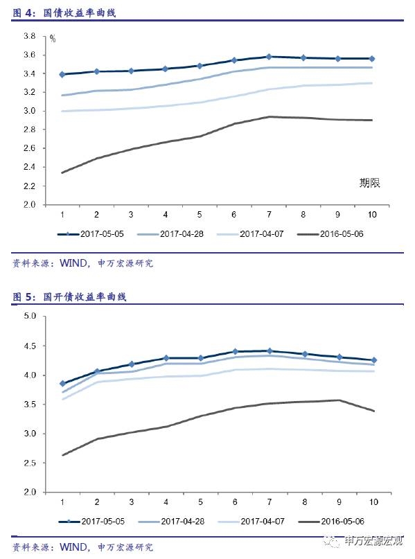 公开市场操作净回笼。上周央行公开市场进行2000亿7天、300亿14天、200亿28天期逆回购操作,共计2500亿元。上周逆回购到期2400亿,净投放100亿。此外周三还有2300亿MLF到期,央行未续做。考虑MLF则整体回笼2200亿元流动性。随着节后资金回流,上周资金面压力如我们此前预期的那样出现缓解,央行公开市场操作继续维持整体回笼格局。随着后续监管执行细则落地,流动性回归常态,市场情绪将继续改善,预计5月资金面仍将保持基本稳定。