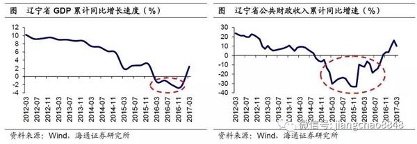 东北经济企稳的一个重要原因是经济数据“挤水分”告一段落。17年1月辽宁省长陈求发在17年辽宁省政府工作报告中公开确认,11-14年辽宁省经济数据存在水分,并且提出“2015年夯实财政数据,2016年努力夯实其它经济数据”的目标。受到GDP数据“挤水分”的影响,16年辽宁省全年GDP降至2.2万亿元,增速大跌转负至-2.5%。由于“挤水分”造成的16年GDP数据基数较低,因此,17年1季度辽宁省GDP增速大幅转正,升至2.4%.