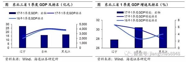 东北三省1季度GDP在全国31个省份中排名继续下滑,增速依旧垫底。从经济体量看,辽宁省GDP总量由去年同期的第12名跌至第15名,吉林和黑龙江两省被山西省赶超,17年1季度排名均比16年同期下跌一位。从经济增速看,1季度辽宁省GDP增速由负转正,但仍在各省中殿后。同为难兄难弟的吉林、黑龙江位列倒数第二和第四。