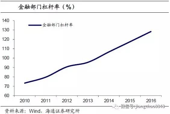 过去两年宽松的货币环境和金融监管的滞后,为金融部门加杠杆套利提供了空间。金融机构通过表外理财和同业业务大肆扩张负债端,资产端则采用期限错配来进行套利,导致金融部门的杠杆率不断上升。