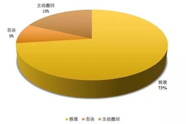 前述接近证监会的相关人士透露,以今年已审结家数244家为基数,审结通过率约为72.95%,未通过(包括终止审查和否决)率为27.05%。同时,2016年6月以来已有106家企业申请撤回并终止审查,且部分企业在现场检查压力和初审会提出问题后主动撤回,通过审核机制产生的实际否决率远高于发审会否决率。