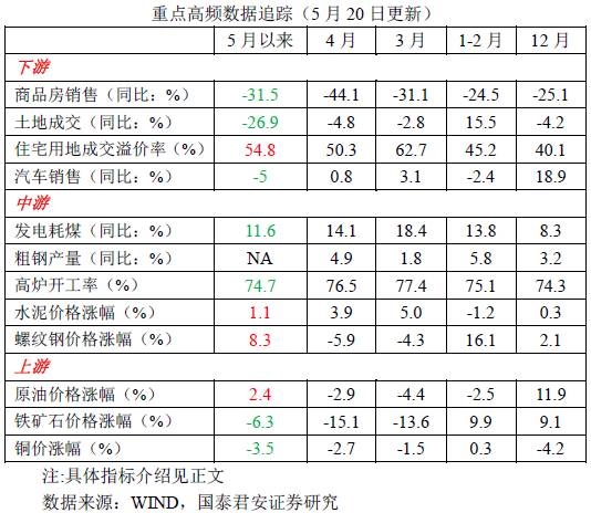 第一,5月以来30城房销继续大幅负增长、100城土地成交降幅扩大、汽车消费仍然疲弱、食品价格继续下降等诸多证据表明终端需求仍然偏弱。