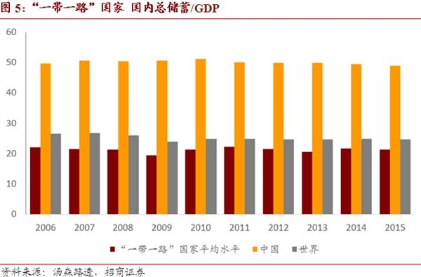 “一带一路”国家需要适度加杠杆,其人口结构和储蓄率水平导致杠杆率偏低,对经济增速有一定抑制作用,前瞻考虑未来的人口结构演进,应提升杠杆率,深化金融结构,提升消费率和投资率。当期增加投资,才能为将来不断提升的劳动力提供更多就业机会,才能实现更高的经济增长速度。从国际收支角度看,“一带一路”国家整体需要一个适度扩大的经常账户逆差以及资本和金融账户顺差,从国际上融入资本。