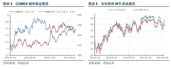 黄金:避险情绪升温,黄金小幅上行。上周五黄金收于1253.6美元/盎司,环比上涨2.1%。上周受特朗普“泄密门”事件冲击,美元创8个月以来的最大跌幅。上周6月加息概率有所下行,但上周公布的工业生产和就业市场数据都显示美国经济仍然在持续向好,预计“泄密门”事件不会对联储6月再度加息构成影响。巴西总统涉嫌贿赂案,引发巴西国内股指本周暴跌8.1%,巴西雷亚尔兑美元仍贬值4.5%。全球避险情绪升温,美元走弱,使得本周黄金迎来反弹。