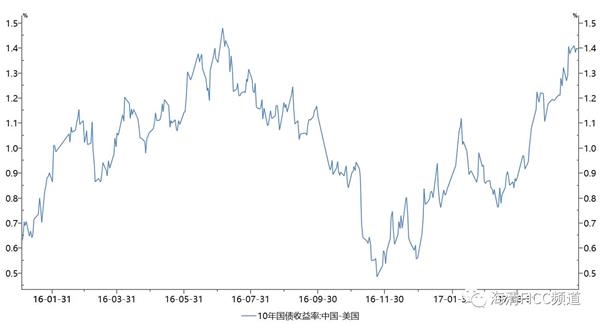 货币政策基本面,中国政府的去杠杆政策导向,央行在货币市场进行加息,验证央行事实上提前启动加息周期,改变了2014-2016年上半年美联储加息预期和中国央行放水降低融资成本的背离,两国央行货币政策取向开始变为同方向,中美两国的货币政策差异化程度进一步收敛。
