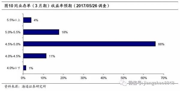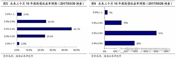 今年3月底10年国债收益率在3.27%左右,当时市场对国债利率上行还是下行还有不少分歧,目前10年期国债收益率已经抬升到在3.66%左右,较上一次调查时上行了接近40BP.