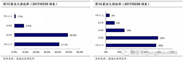 上次调查时,有49%的受访者选择2-3年为最佳久期;41%受访者选择1年及以下为最佳久期。