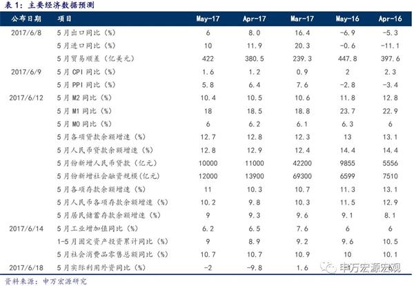 5月工业生产和增速有所放缓,但投资和消费数据仍将保持平稳。增长放缓但仍在底线之上,防风险严监管仍是政策主基调,融资成本有可能进一步上升。预计5月工业生产放缓至6.2%,投资增速小幅回升至9%,社零增速稳定在10.7%。进出口增速有所放缓,但顺差有所扩大。将显著回升至1.6%,则将继续回落。监管加强,表外融资仍将向表内信贷转移,社融数据和M2增速将继续回落。鉴于经济增长仍在政策容忍限度之上,严监管仍在延续。贷款加权、收益率以及信用债收益率均已显著回升。而企业融资成本抬升已对企业成本和利润造成显著影响。证监会接连出台政策加强市场监管;央行拟进一步完善人民币中间价机制,引入“逆周期调节因子”,今后汇率走势除了受市场因素决定外,政策的影响也将显著增加。