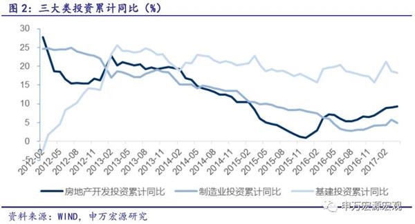 去年5月的投资增速尤其是民间投资增速曾遭遇断崖式下滑。固定资产投资累计增速由10.5%骤降至9.6%,民间投资也由5.2%骤降至3.9%。预计投资增速的断崖式下滑有部分统计因素,譬如辽宁的累计投资增速由2016年4月的-37%降至5月的-48.7%。