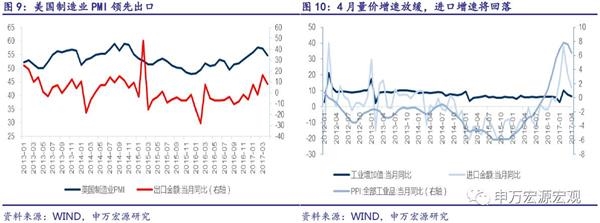 截至26日,5月BDI指数同比上涨58.1%,远低于4月同期的109%,全球贸易增速或将有所放缓。作为我国出口领先指标的美国制造业PMI指数已连续两月出现回落,预计5月出口增速回落至6%。国内工业生产降温叠加PPI涨幅进一步回落,预计进口增速将回落至10%。贸易顺差回升至422亿美元。