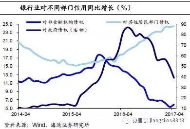 商行:压制的不仅是同业,还有信用!央行去杠杆、紧货币对商业银行产生了哪些影响呢?首先,银行业资产负债表扩张的速度在放缓。截至17年4月底,银行业资产同比增速从去年底的16%降至13%,南京、宁波、光大、民生等银行资产同比增速均有下滑,中信银行总资产相比去年底减少了1800亿。从结构上来看,同业业务受到压制,增速下降。银行业同业债权同比增速从去年四季度的20%以上降至当前的11%。一季度大型银行同业资产增幅不足800亿,相比去年四季度的7300亿明显放缓,金融业内部加杠杆行为正受到抑制。与此同时,一季度兴业、上海、浦发银行的应收款项类投资均出现萎缩,同业投资的增长也在降温。另一个不容忽视的结构变化是,银行业对实体经济提供的信用增长也受到抑制。在各部门中,除了对居民部门的债权增速还处于25%的高位外,对非金融机构债权的增速从去年底的10%以上降至不足6%,对政府债权从80%以上降至不足40%。如果考虑到银行业通过非银机构向实体放贷,企业部门从银行体系获取的信用被压制得更多。
