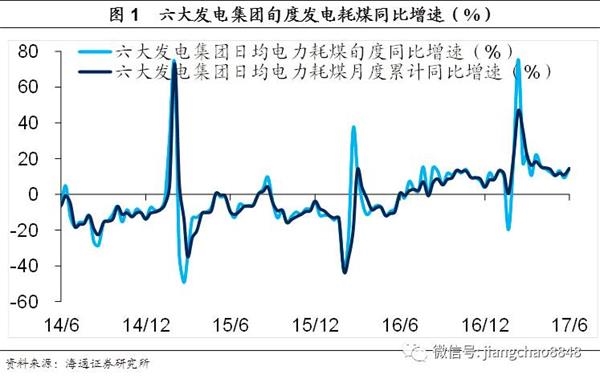 电力:5月发电耗煤增速下滑,6月上旬反弹,工业起步稳健。5月六大发电集团耗煤同比增速11%,较4月的14%继续下滑,预示5月同比增速或继续回落。6月上旬前8天六大发电集团日均耗煤同比增速15.4%,较5月明显反弹,环比增速7.1%,创历年同期新高,预示6月工业经济起步稳健。