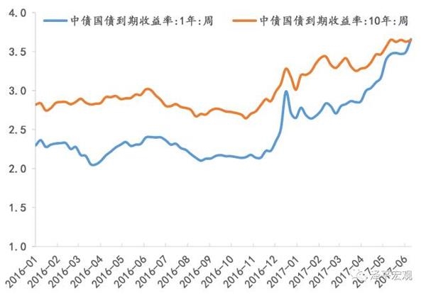 30大中城市地产销售延续下滑但降幅收窄,6月首周销量同比-27.4%,较5月同比上升了11.5个点;土地供应和成交均回落,6月100城土地成交同比-58.3%,低于5月同比-18.3%。5月是汽车销售旺季,但狭义乘用车销量低速增长,同比仅2.1%。6月发电耗煤量同比增15.4%,高于5月同比11.0%。吨钢持续盈利高炉开工率上升。钢价6月同比65.5%,较上周减少3.2个点,高于5月48.0%,水泥价格维持高位。美油库存增幅超预期,原油价格直线下跌至45美元;有色价格分化,铜铝增速上升锌下调。6月鲜菜价格同比继续回升猪肉价格同比降幅扩大。受金融去杠杆和MPA考核影响,市场流动性趋紧,1年与10年国债收益率倒挂。央行释放MLF补充跨季资金稳定年中资金面。本周R007利率为3.3430%,较上周下降9.29个BP;DR007利率为3.0011%,较上周上升0.30个BP;10年期国债收益率为3.6478%,较上周上升2.01个BP。人民币汇率继续小幅升值。