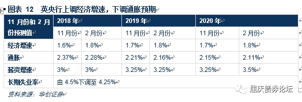 从英央行对经济的态度来看,对英国经济表达乐观态度。英央行上调近三年的经济增速预期,分别将2018年到2020年的经济增速预期上调至1.6%(1.8%)、1.7%(1.8%)、1.7%(1.8%),表明英央行对英国经济的前景更加乐观。另外,英央行认为上一次加息并没有对英国经济产生不良影响,相反,英国经济前景更加乐观,如果3月份英国可以与欧盟达成贸易协定,那么英国投资将进一步增加。