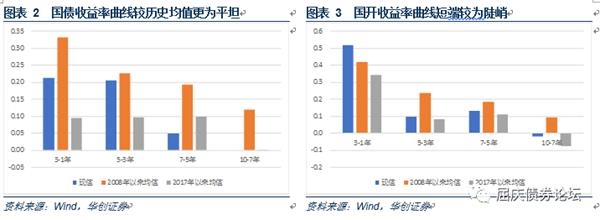 之所以会出现这样的情况,我们认为与银行整体配置需求疲弱有关。3年、5年品种长久以来一直是银行进行利率债配置的主要品种,随着2016年以来货币政策的持续收紧,同业去杠杆趋势下银行负债端增速持续放缓,资产端银行又受制于MPA等监管额度限制,配置需求始终较为疲弱。而近期由于资金面较为宽松,短端利率出现了一定程度的下行,与配置需求疲弱共同作用,使得国债曲线3-5年段,国开债曲线1-3年段明显较为陡峭。