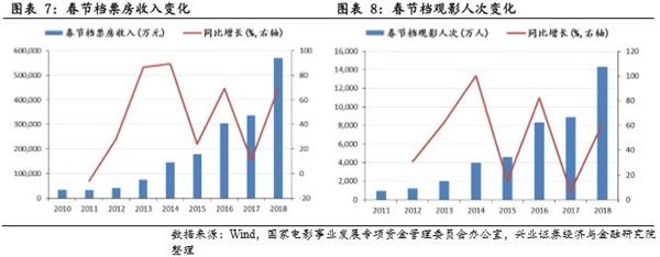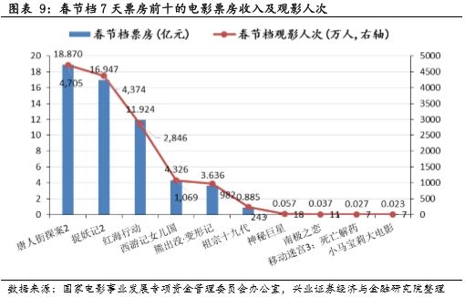 ——电影:春节档票房同比大涨69%,连续2天单日票房超10亿。国内春节档电影总票房达56.99亿,较2017年春节档票房大幅增长69.15%。《唐人街探案2》、《捉妖记2》、《红海行动》的7天累计票房位居前三,分别为18.87亿、16.95亿、11.92亿。