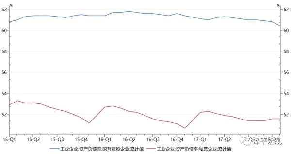 中财办副主任杨伟民提出,去杠杆最重要是企业杠杆要有所下降,居民杠杆最主要是不要再增加。在企业杠杆中,国企杠杆率较高,虽然2016年5月以来工业国企资产负债率整体向下,但截至2017年底仍高于私营企业8.8个百分点。