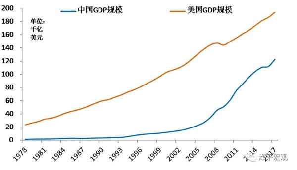 图3:中美GDP规模:1978-2017年