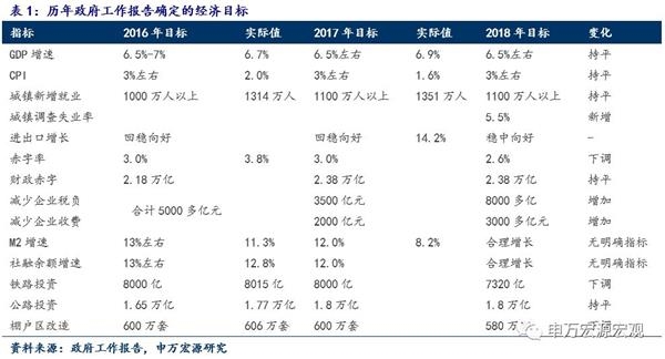 GDP增长目标设为6.5%左右。6.5%左右的GDP增长目标基本符合预期,也与2017年持平,突出了政策的连续性和稳定性。但是,与2017年相比,删掉了“在实际工作中争取更好结果”的表述,意味着政府对经济有更高的容忍度。这也是建立在2017年经济超预期回升的基础上的,使得政策有了更多的腾挪空间,同时也是为了配合金融监管和地方债务整顿的需要。但我们认为,2018年经济仍然有望超额完成目标,与2017年大体持平。