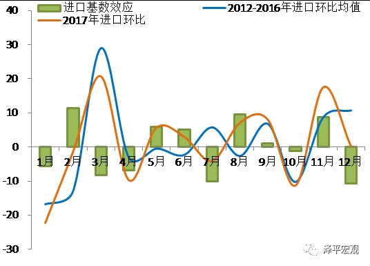 4、进口因春节错位、环保升级等短期大幅下滑。2月进口同比6.3%,较1月大幅下滑30.6个百分点,为2017年1月以来次低增速,这主要原因在于春节错位、环保升级等影响。从基数效应看,2017年进口环比与2012-2016年进口环比均值的差为11.4个百分点,较1月上升17个百分点。合并1-2月进口数据看,进口同比为21.7%。