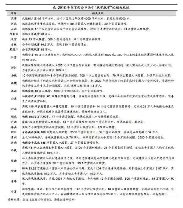 各地方政府在工作报告中均对脱贫攻坚工作做出了重要部署,从其表述来看,18年的脱贫扶贫工作主要呈现三方面特点: