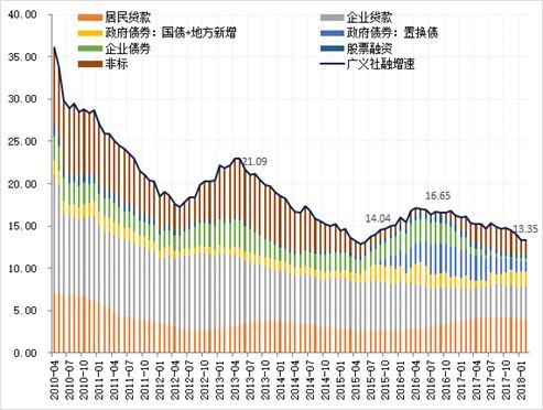 广义社融增速保持平稳。2月新增社融1.17万亿,同比稍微增加792亿元,基本符合市场预期。1-2月新增社融同比减少5574亿元,这主要反映了金融严监管背景下,表外融资的大幅收缩,1-2月信托贷款、委托贷款及未贴现银行承兑汇票累计为1190亿元,同比减少1.18万亿,新增信贷累计同比增加了3601亿元。信贷利率上行,以及债券收益率的小幅回落,或将使得信用债融资有所增加,股票融资预计将继续保持平稳。2月广义社融增速13.35%,与前值基本持平,实体融资增速保持平稳。