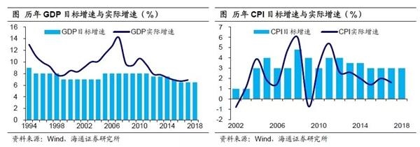 经济通胀稳字当头。首先来看经济、通胀目标。18年GDP增速目标为6.5%左右,CPI增速目标为3%左右,均较17年持平。实际上,GDP增速目标已经连续3年保持在6.5%左右,而CPI增速目标更是连续4年保持在3%左右。17年经济增速时隔6年首现反弹、工业品价格涨幅创下多年新高,但18年经济、通胀增速目标依然“稳字当头”,这是为什么呢?