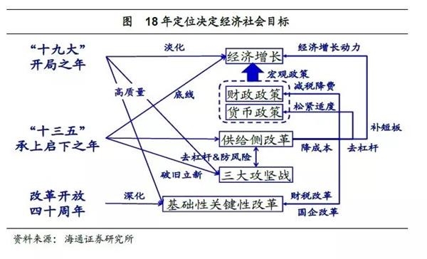 其实去年底中央经济工作会议已经对18年的定位进行了很好的概括:贯彻党的十九大精神的开局之年,改革开放40周年,决胜全面建成小康社会、实施“十三五”规划承上启下的关键一年,分别对应质量变革、效率变革与动力变革。
