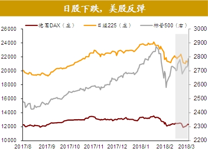贸易战风险是主因。特朗普宣布要对钢铁、铝制品全面征收关税,引发其他国家反击和全球贸易战风险。美股下跌,并向外围股市蔓延,一是由于贸易保护对经济基本面存在全球性负面影响,全球性贸易战可能将全球复苏推向滞涨;二是前期美股暴跌引起的波动性上升以及全球共振效应尚未消退。