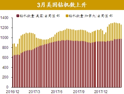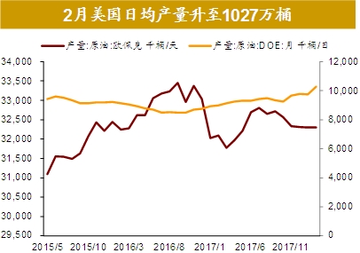 美国原油产量不断创新高,日均产量升至1027万桶,钻机数上升、库存累积,成为油价的主要利空因素。