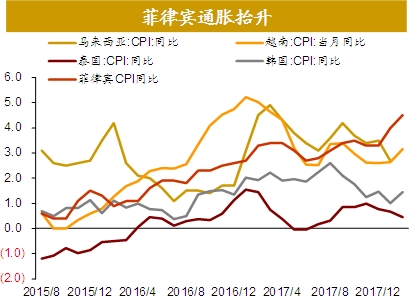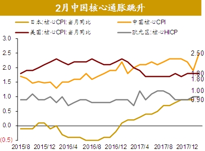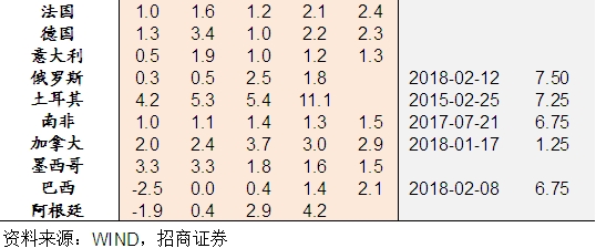 2月12日,俄罗斯将基准利率下调25BP至7.5%,并称将考虑进一步降息,因为通胀预期大幅下滑,短期偏向通胀的风险已经消退。18年通胀超过4%的可能性大降。在此环境下,俄罗斯央行将会持续调降指标利率,可能在2018年完成从温和紧缩向中性货币政策的过渡。由于通胀下行,2017年俄罗斯央行曾6次降息。