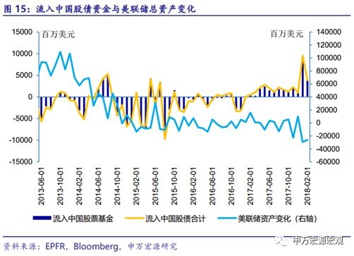 18年2月中国股票资金净流入40.39亿美元,1月净流入92.46亿美元。债券市场18年2月净流出2.04亿美元,1月净流入2.97亿美元。18年2月流入中国股债合计38.35亿美元。18年2月中国外储规模31344.82亿美元,与1月相比减少0.85%。