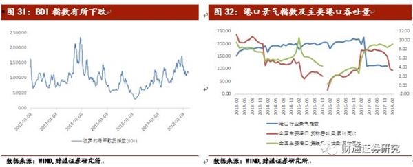 BDI指数基本有所下降,截止3月14日BDI指数收1169,较上周环比下跌2.34%。海运方面: