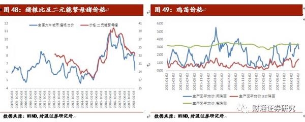 截止2018年3月9日,22个省市猪肉、生猪、仔猪平均价位20.09元/千克、11.49元/千克和28.69元/千克,除仔猪外本周都小幅下跌。猪肉价格持续回落,2018年2月生猪存量情况显示生猪存栏、能繁母猪数量持续下降。2018年3月7日全国大中城市猪粮比6.20,二元能繁母猪价格下跌至32.94元每千克。
