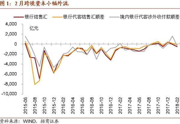 2月央行外汇占款余额增加40.5亿元,符合我们央行外汇占款余额变化在0附近波动的判断。在外汇市场供求基本平衡的格局下,央行较少、甚至不干预外汇市场导致央行外汇占款余额的变化较少,难以补充流动性。我们把2000年以来的外汇占款分成四个阶段,具体请参见《央行外汇占款余额变化的四个阶段-中国跨境资本流动数据月报2018年1月》。2月末央行官方余额为3.13万亿美元,当月为-270亿美元,是近一年内首次出现余额下降。2月汇率折算因素、资产估值变化是央行官方外汇储备余额下降的主因。