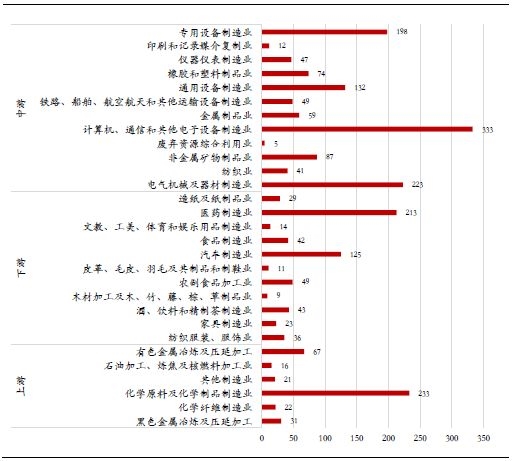 分上中下游看:上游制造业2035亿元,占23.6%;中游制造业3420亿元,占39.7%,下游制造业3165亿元,占比36.7%。
