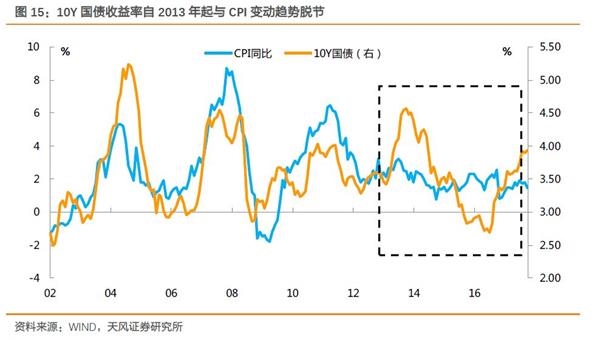 从2013年开始,我们也可以明显观察到我国市场的利率走势逐步与CPI指标脱节,这背后很大程度上也是央行与金融监管行为不再紧盯单一经济变量的原因。