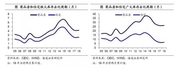 去化周期五年新低。从库存去化周期这一衡量库存相对水平的指标上来看,17年末商品房狭义库存去化周期约为4.2个月,其中住宅狭义库存去化周期在2.5个月左右,17年末商品房广义库存去化周期约为26.3个月,其中住宅广义库存去化周期在6.5个月左右,均创下自13年以来的最低值。而18年1-2月住宅库存去化周期延续跌势。