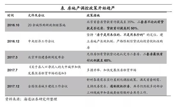 但是,高收益低风险的住房投资信仰已被打破。一方面,住房调控政策开始趋严,16年底的中央经济工作会议明确提出了“房子是用来住的、不是用来炒的”的定位,17年3月北京发布“史上最严限购令”,认定二套房时既认房又认贷,过去两年多地出台遏制投机炒房的政策。此外,房地产长效机制逐步建立,住房租赁市场建设也开始加快发展,并且政府在18年工作报告中提到将“稳妥推进房地产税立法”,这些举措均将大幅降低投资者的预期收益。