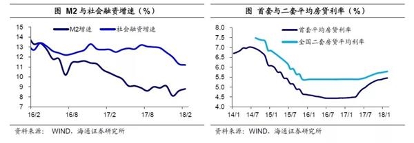 防范金融风险,去杠杆收货币。而新政府强调高质量发展,打赢防范金融风险的攻坚战。18年中央财经委员会的首次会议就强调要结构性去杠杆,而18年的政府两会也首次未设定任何货币和融资增速目标,对此前后两任央行行长的解释也非常明确:“因为过去的货币发多了,池子里面的水已经很多了,所以以后的高质量发展主要是盘活存量货币”,而且央行在年初的货币政策报告中已经写出了“未来货币低增将是新常态”。17年2季度以来,我国M2增速已跌破10%,18年1-2月货币扩张速度更是降至9%以下,而18年社融增速也跌至11%左右,年内很可能回落至个位数以下。失去了货币增长的支撑,居民举债很难进一步扩张。