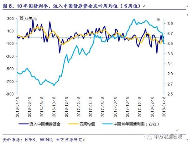 4月18日当周,中国债券基金有0.09亿美元的资金净流入。四周均值净流出0.24亿美元。10年期国债利率为3.5013%,低于前周的3.7109%。